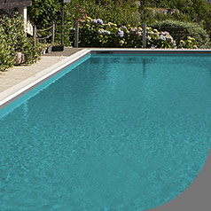 Neben der klassischen blauen Folie sind zusätzlich die Farbvarianten Sand und Grau verfügbar. Die Farbwirkung des Wassers ist je nach Folienfarbe unterschiedlich.
